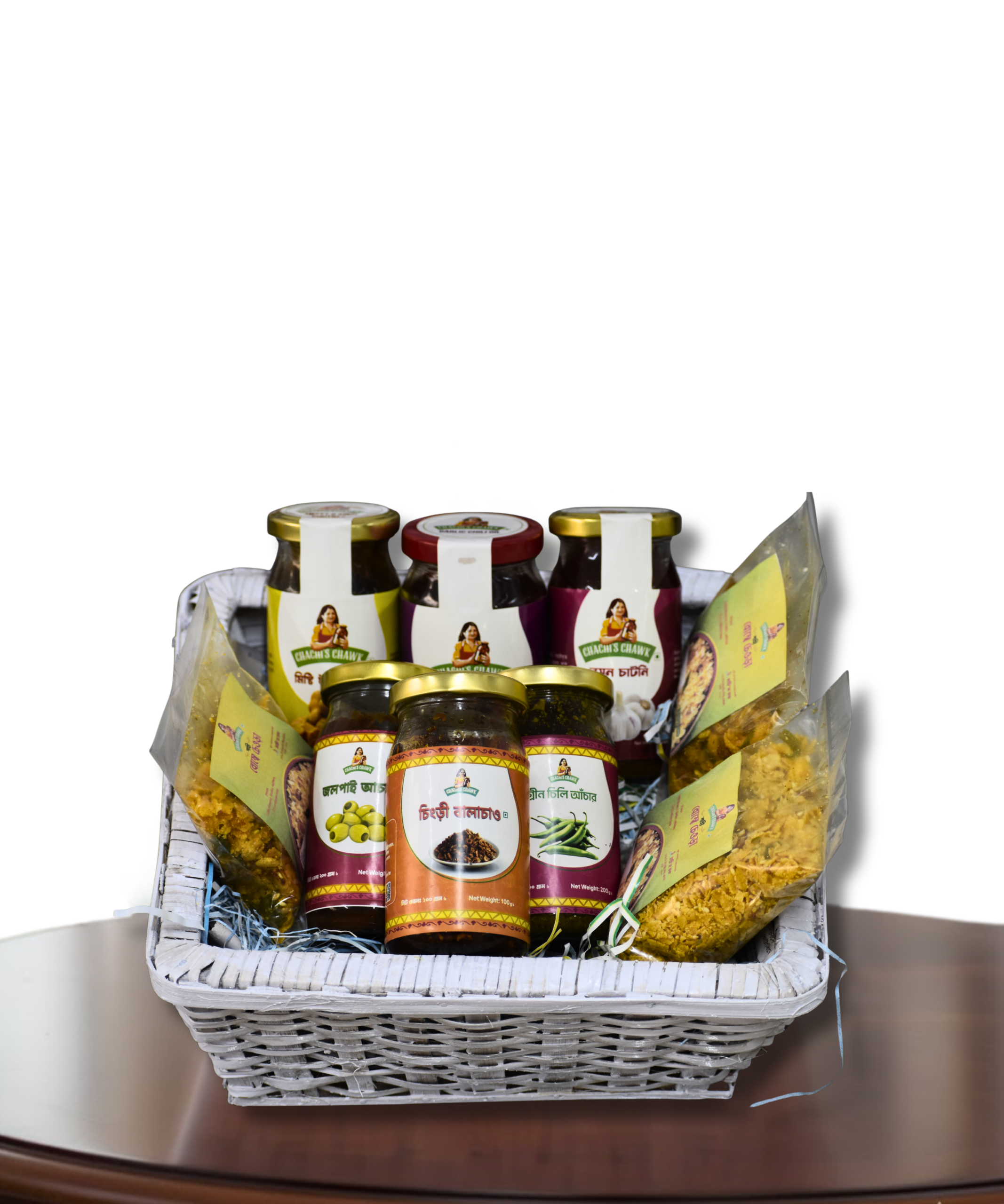 A thoughtfully curated gourmet gift basket that blends authentic flavors with premium quality. Featuring handcrafted, home-style condiments and savory delights, this hamper is perfect for corporate gifting, celebrations, and special moments with your dearest ones. Beautifully packaged and gift-ready—because meaningful relationships deserve exceptional taste.
