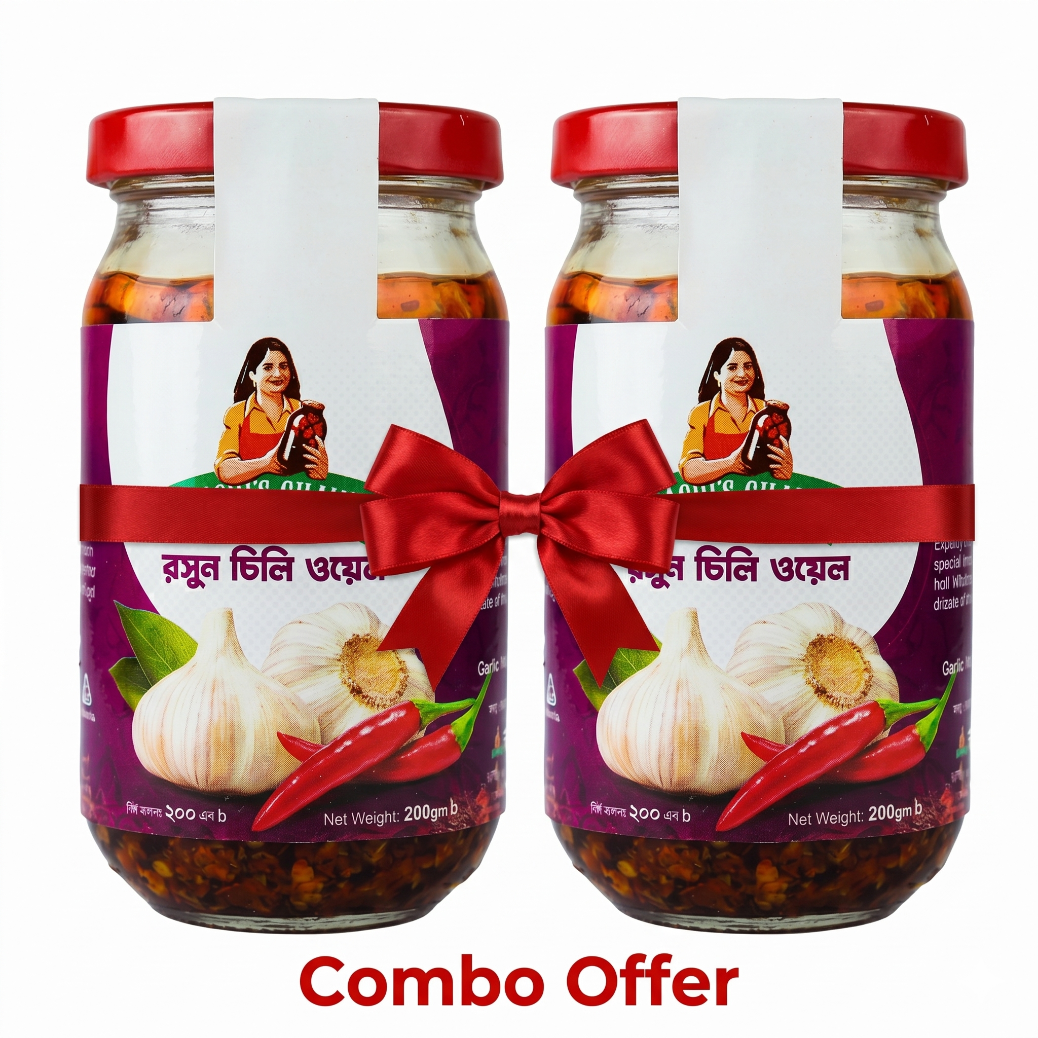 রসুন ও মরিচের ঘন ফ্লেভারে ভরপুর প্রিমিয়াম চিলি অয়েল (প্রতি জার ২০০ মি.লি.)। ডাবল জারে ডাবল সেভিংস।