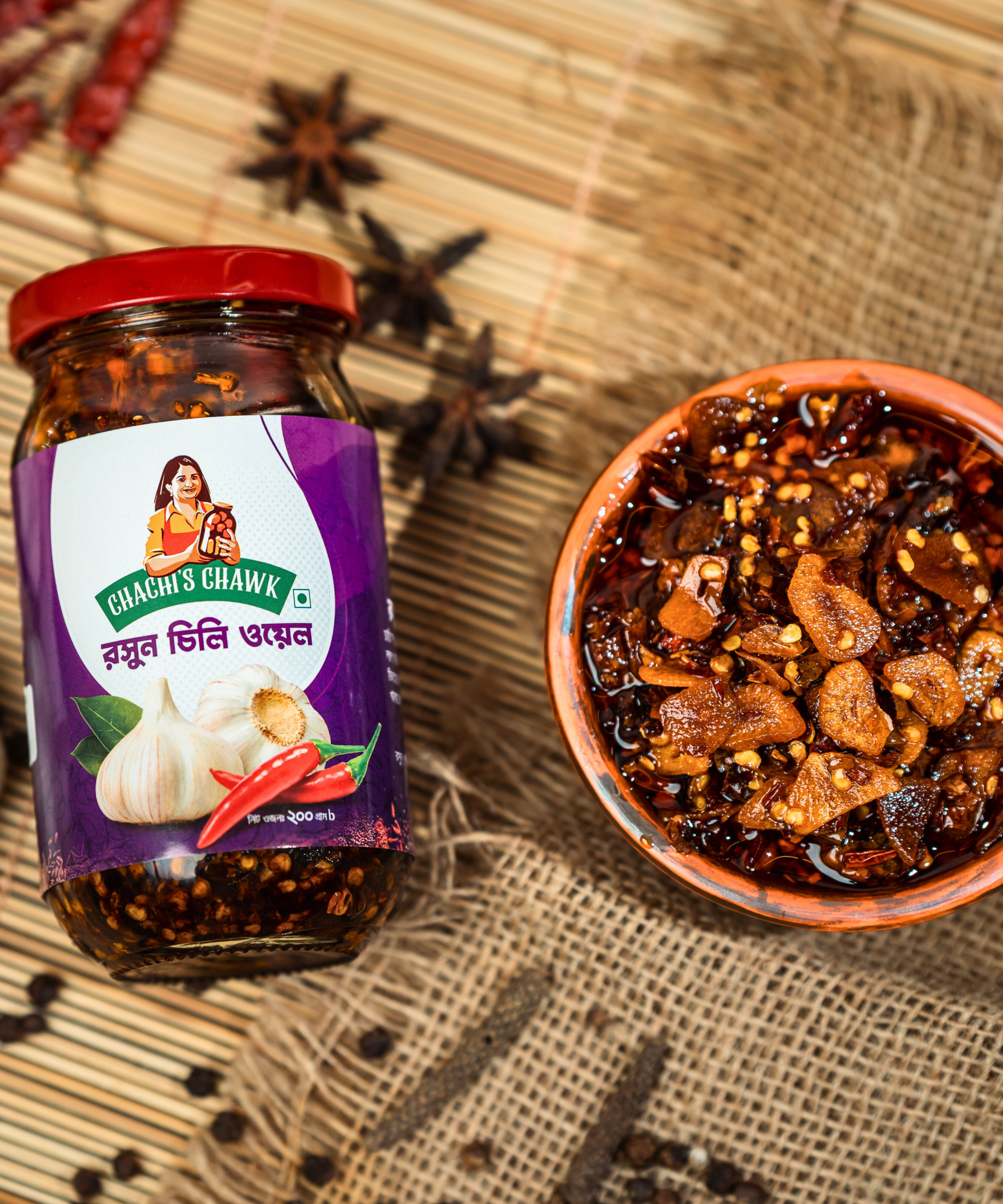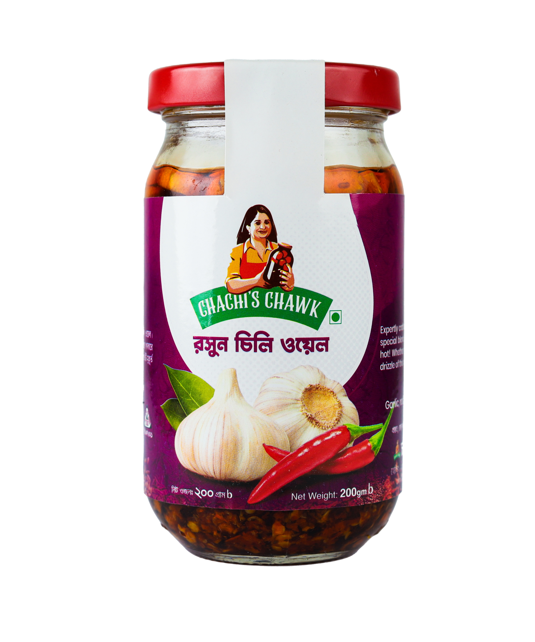 ফ্রেশ রসুন ও উন্নত মানের লাল মরিচ দিয়ে যত্নসহকারে তৈরি চাচির চকের রসুন চিলি অয়েল—যার ঝাল তীব্র নয়, বরং আরামদায়ক উষ্ণতায় খাবারের স্বাদ বাড়ায়। প্রতিটি জারে এমনভাবে স্বাদ, ঘ্রাণ ও টেক্সচারের ভারসাম্য রাখা হয়েছে, যাতে ঝালটা মুখে লেগে থাকে।