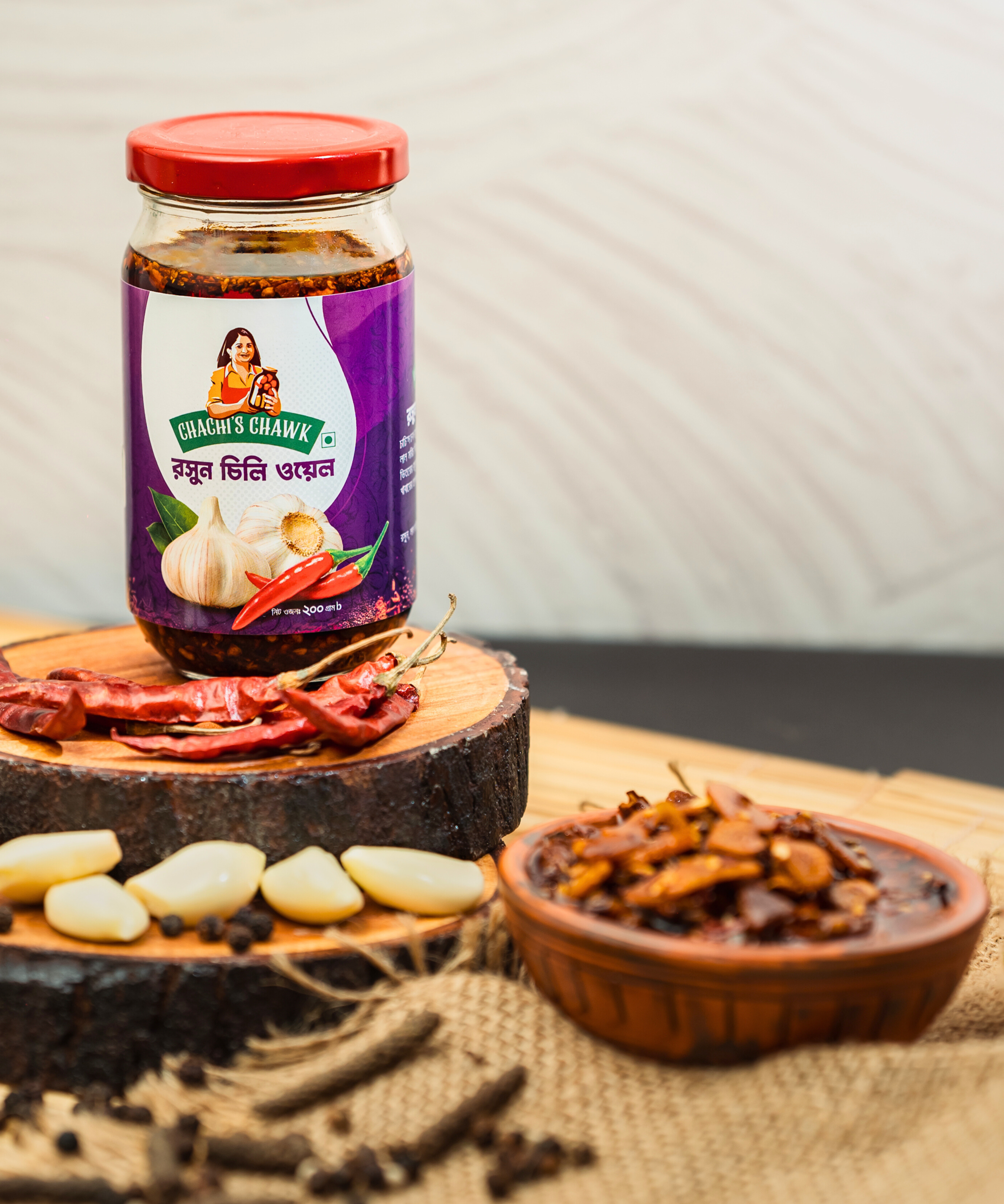 Made with carefully prepared garlic and selected red chilies, Chachi’s Chawk Garlic Chili Oil delivers a rich, gently spicy warmth that enhances food without overpowering it. Every jar is thoughtfully crafted to balance heat, aroma, and texture—so the flavor lingers, not burns.